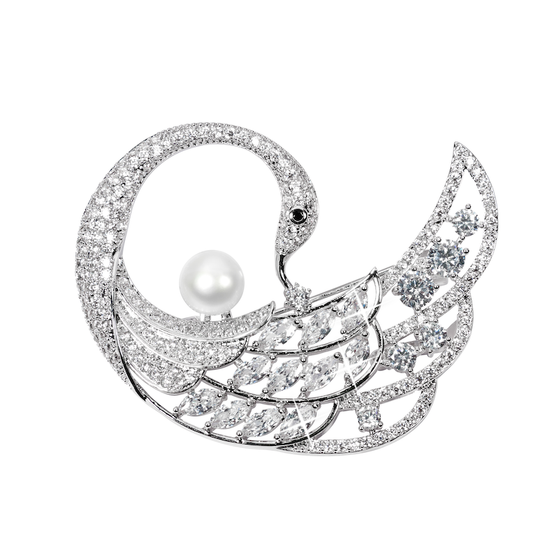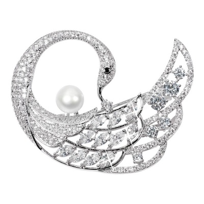 Třpytivá perlová brož labuť elegantně ozdobí nejen šaty či kostým, ale může také zkrášlit čepici, klobouk či kabát.