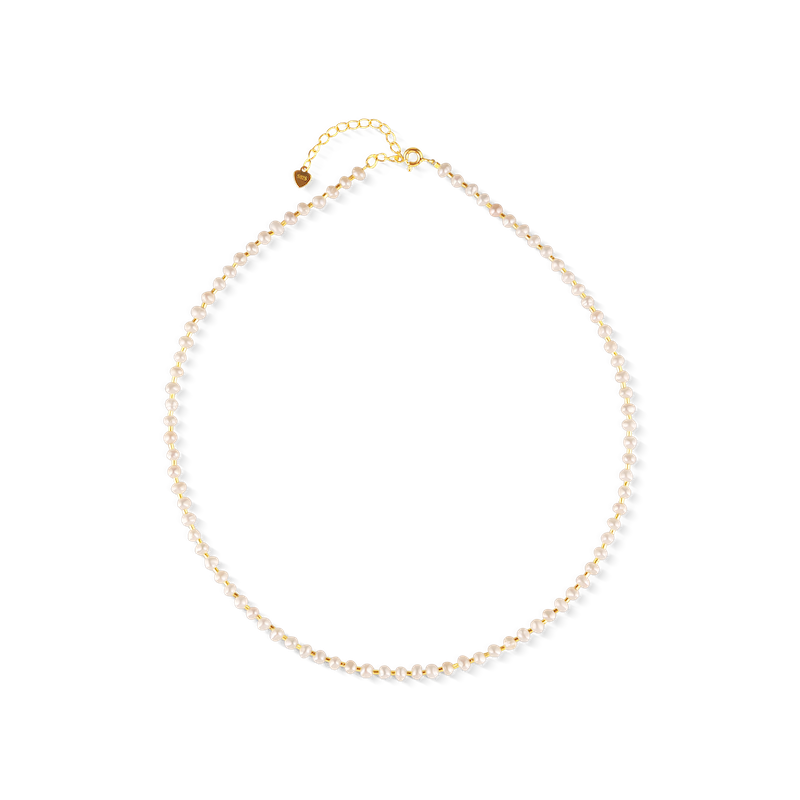 Tento moderní náhrdelník z drobných sladkovodních perel o průměru 3,5–4 mm je navržen tak, aby se stal univerzálním doplňkem pro každodenní nošení.