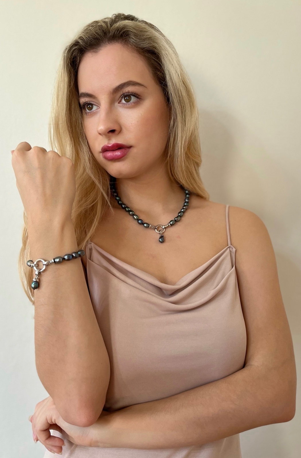 Perlový náhrdelník z tmavých barokních perel. Přívěsek je navíc možné odepnout a nosit samostatně například na řetízku.