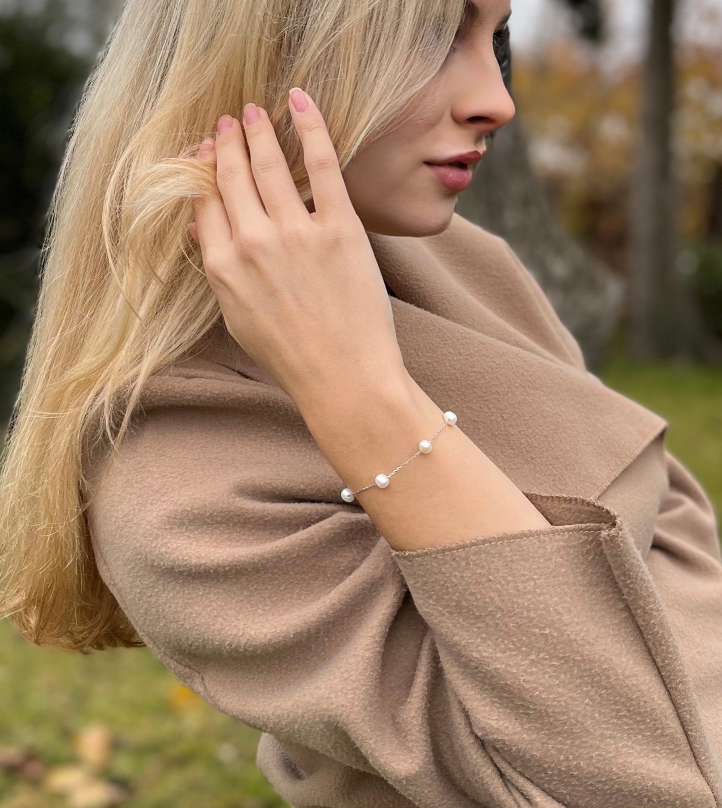 Perlový stříbrný náramek. Skvěle ladí s náhrdelníkem ze stejné kolekce.