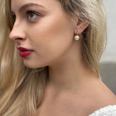 Pozlacené perlové náušnice s krásnou perlou s vysokým leskem a praktickým zapínáním na bezpečnou klapku.